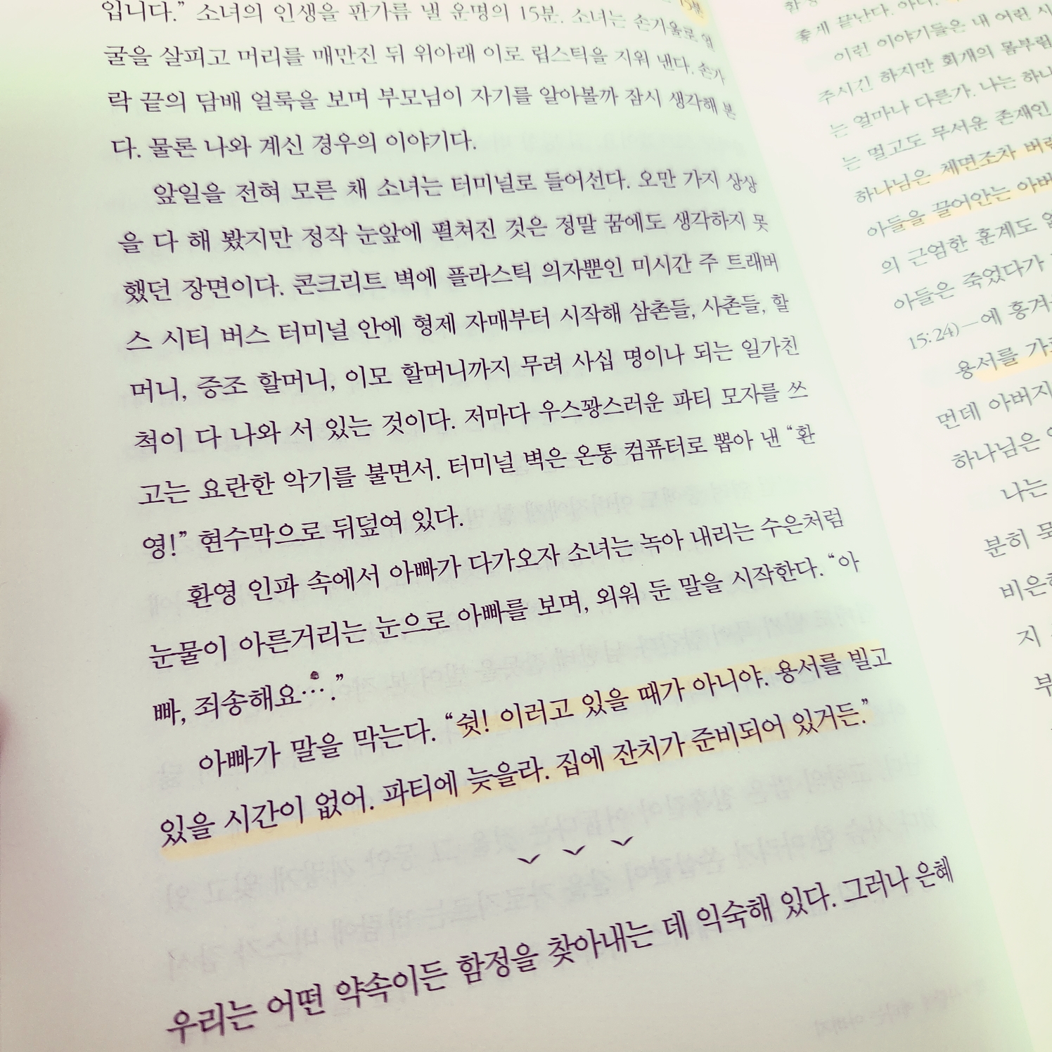 말씀을 맺겠습니다. 저희 아버지께서는 목사님이십니다. 그리고 올해 연말 은퇴를 앞두고 계십니다. 그런데 굉장히 엄격하고 무서운 분이십니다. 그래서 저희 아버지, 저도 어렵지만 저희 아버지 교회 같이 목회하시는 부목사님들께서 저희 아버지를 정말 어려워하십니다. 특히 이럴 때 어려워하십니다. '김 목사님 내 방에 잠시 오세요.' 사실은 뭐 음료수가 생겨가지고 그냥 가지러 오라고 하시는 것인데, 그것 때문에 쪼시는 거예요. 그리고 저희 아버지께 가서 컨펌받으려고 하는 것도 어려워하셨습니다. 목사님 방에 잠시 들어가도 되겠습니까 물어보니까 벌벌 떠시는 거예요. 그런데 저는 저희 아버지 집무실에 들어가는 거 별로 어렵지 않습니다. 저는 저희 아버지 집무실에 들어가서, 제 마음대로 아버지 방에 있는 음료수 마음대로 꺼내 먹고요. 좀 두꺼운 책 마음에 드는 책 있으면 조용히 낄끼빠빠 빼가지고 서울로 가져와서 라면 받침대로 씁니다.
